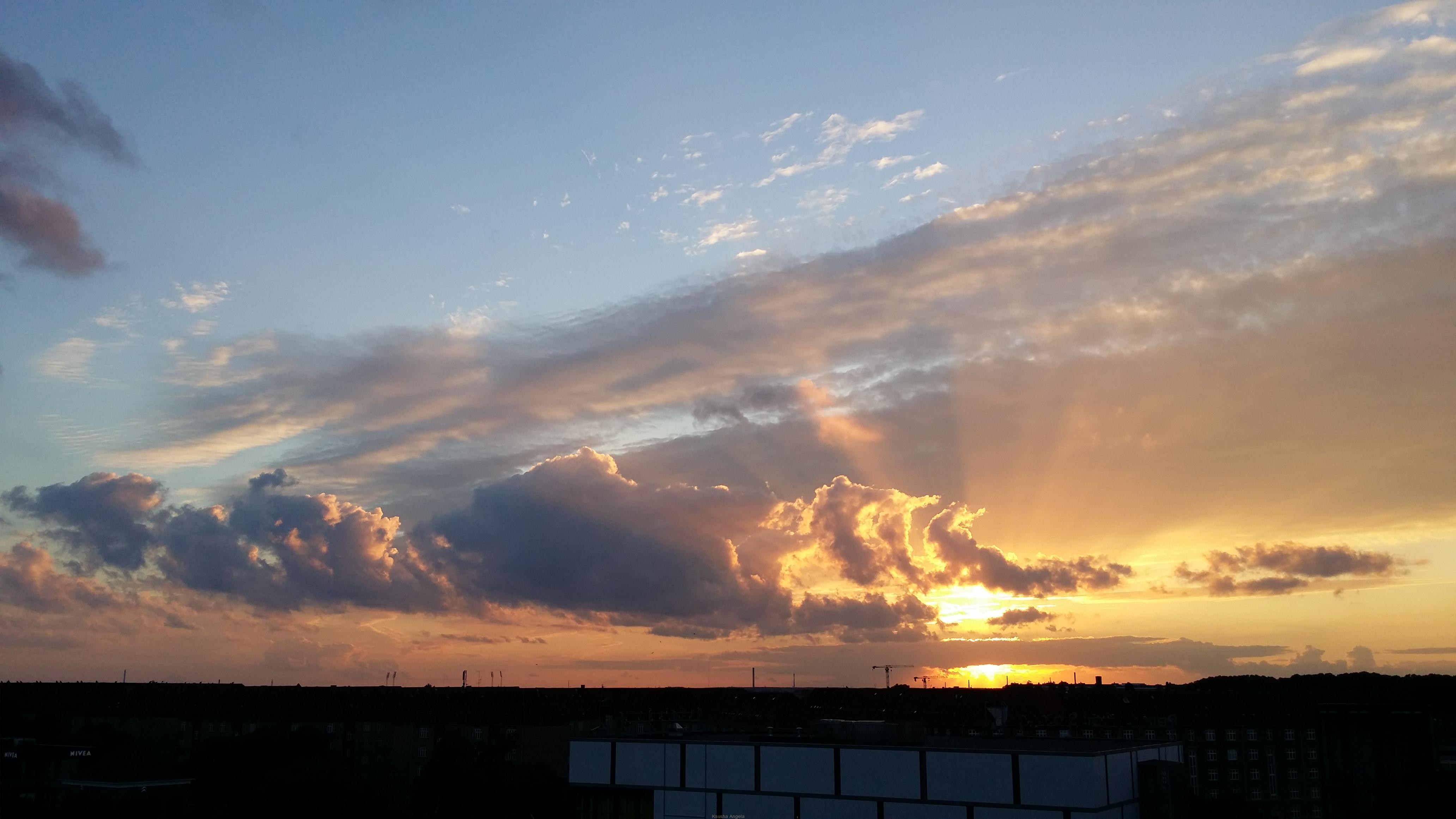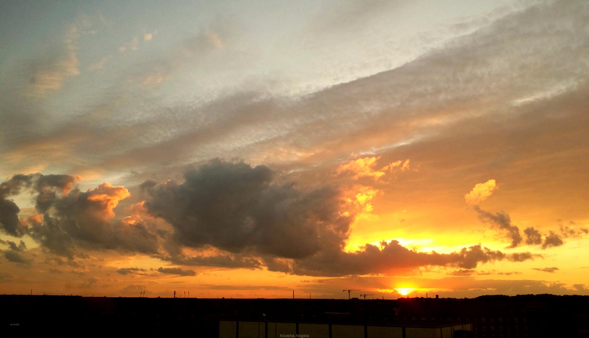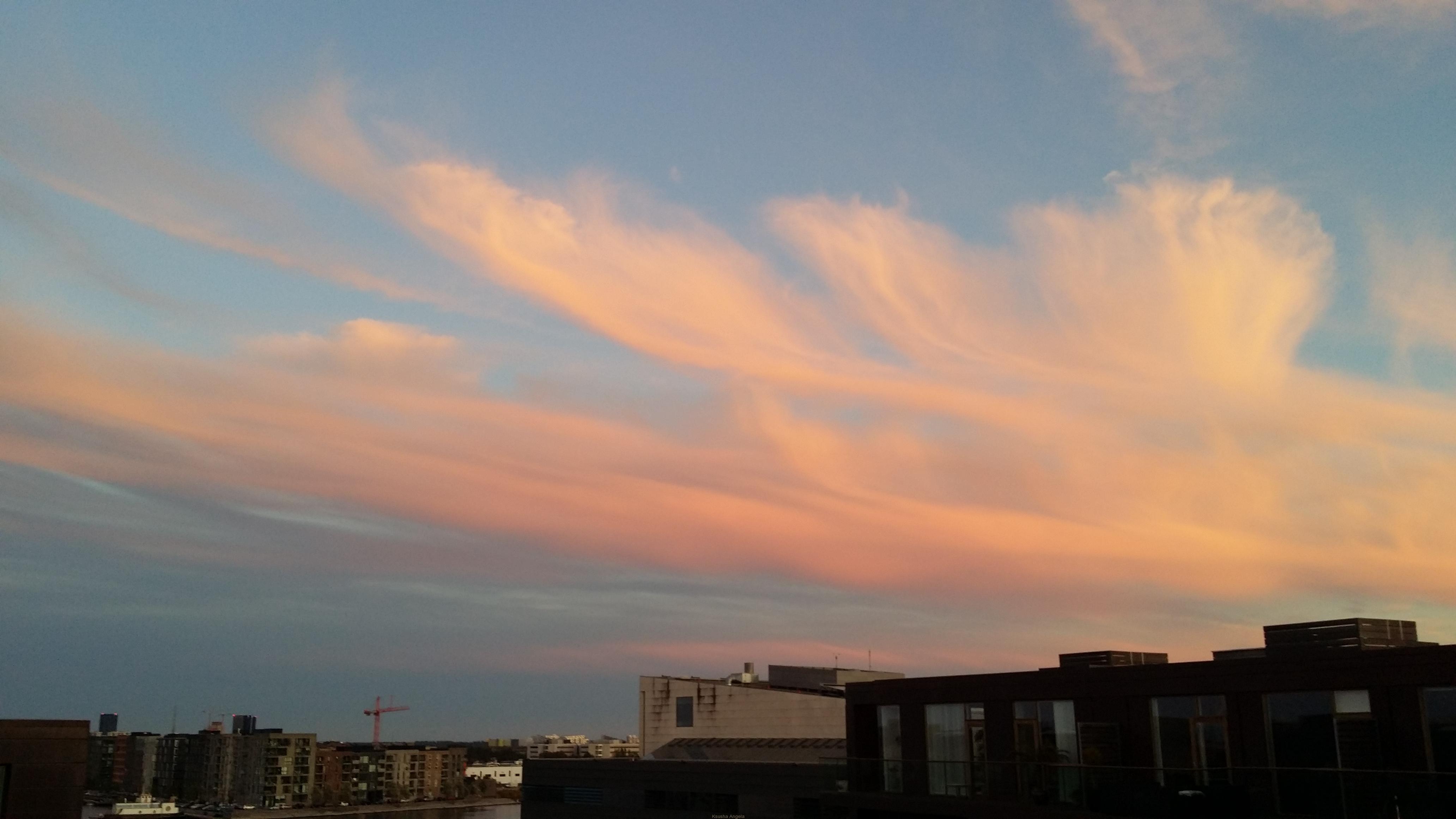 Эпитет “красиво” ничего вам не скажет о скандинавских небесах! Это просто симфония, экспрессионизм, поток сознания, постоянно вращающийся над головой полный спектр красок. Даже в обеденные часы я замечала на нём интереснейшие оттенки бирюзы. Оно другое. И облака другие. Иногда будто размазанные мастихином высоко над маршрутами самолётов, а временами проносятся прямо над шпилями замков, цепляя красные флаги с белыми крестами, и кажется, что можно их коснуться, если подняться на крышу своего дома! Формы этих носителей воды – самые причудливые и неповторимые. Ни один человек на свете, ни один ум самого искусного художника не способен изобрести такие невероятно красивые сюрреалистические силуэты и объёмы, такие стремительные и одновременно гибкие линии!